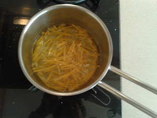 hirviendo durante 2 minutos y escurrir en papel de cocina. Cortar
